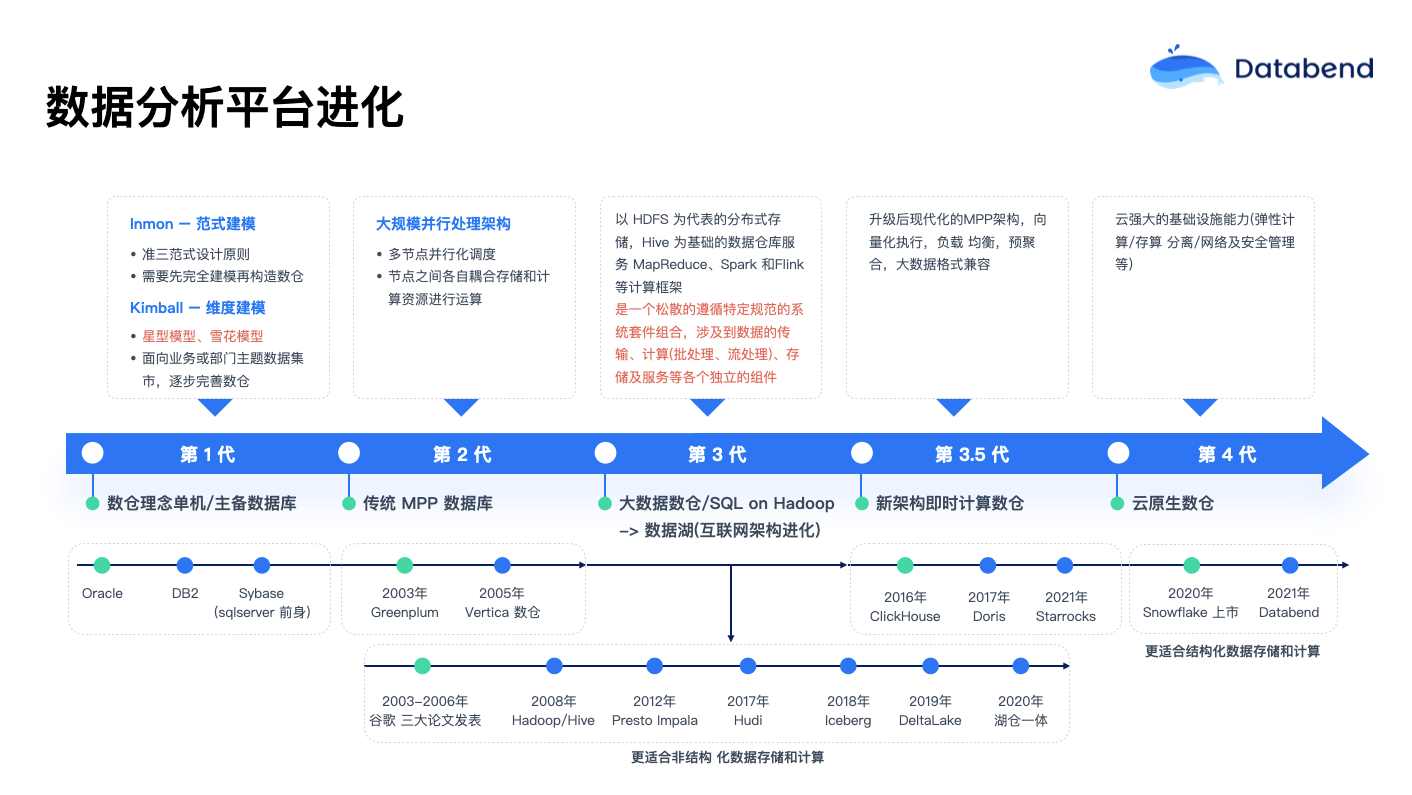 我本人是从 OLTP 转到大数据基础架构的, 目前是 Databend Labs 联合创始人兼生态负责人。今年是我进入这个领域的第四年,虽然仍是大数据领域的新兵,但已经深深感觉到这个行业的巨大变化与无限机会。 欢迎更多大数据从业者一起交流,共同成长。你经历过哪一代的大数据平台?你所在的公司现在处在哪个阶段?你又是怎么看待“数据搬运工”到“数据工程师”的转变?欢迎在评论区留言,聊聊你的真实感受和思考。
