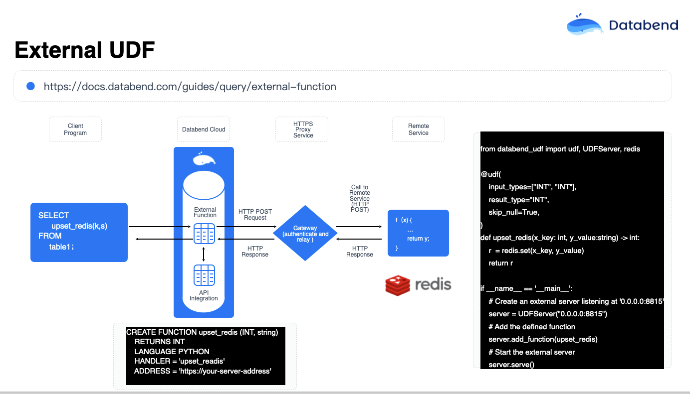 如你再会点 Python ,还可以利用 Databend 这类支持外置 UDF 的产品, 实现表级增量捕获,替换原来的 Flink 任务。原先游戏行业里,打完一把游戏立刻输出本局对战详情的任务就可以这样搞定。原来几十台 Flink 集群才能跑的流计划任务,现在只要半天就能搞定,而且还能做到弹性伸缩。