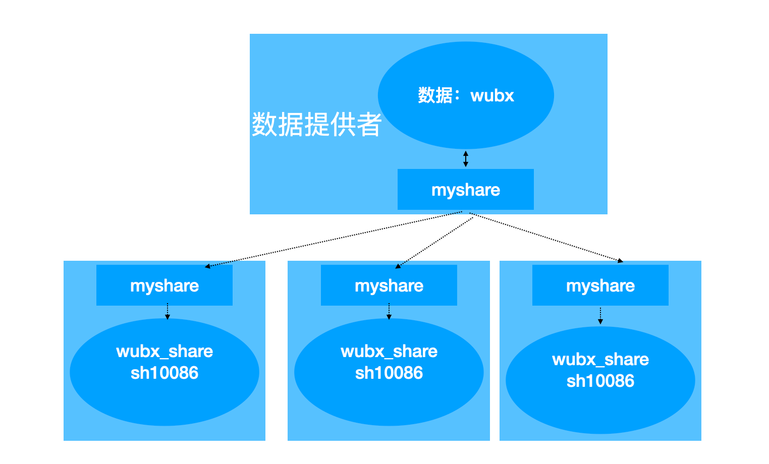 alter share myshare add accounts='sh10086,fj10086,bj10086';